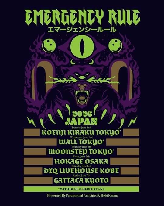Emergency Rule first toured Japan in 2024, quickly building a strong following with their high-energy live shows and riff-driven sound. Their return marks the band’s first international dates since that debut run.