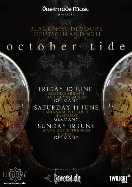 OCTOBER TIDE will hit Germany this coming weekend under the “Blackness Devours Deutschland” banner: