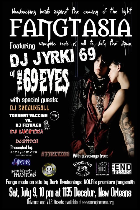 Advance and VIP tickets available at Seraphemera Books and Music. Doors open at 10:00 p.m. on Saturday, July 9 at 1135 Decatur in New Orleans.