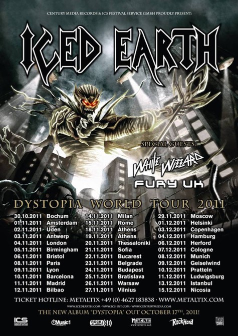 ICED EARTH‘s 10th studio offering, “Dystopia”, was released in Europe on October 17 and in the U.S. on October 18 via Century Media Records. Two bonus tracks were also recorded for inclusion on special editions of the album.