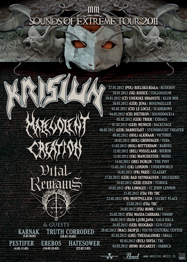 South Australian extreme thrashers TRUTH CORRODED will kick off the New Year with the band’s first ever tour of Europe. The band will be main support on ‘THE SOUNDS OF EXTREME TOUR 2012’ featuring KRISIUN (Century Media) MALEVOLENT CREATION (Nuclear Blast) and VITAL REMAINS touring across Europe and the U.K from January 27 to February 18. Tour dates as follows: