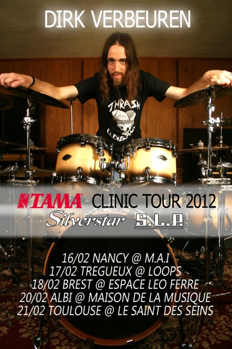 During this, his third European tour as a solo drummer, Verbeuren presented Tama’s Silverstar and SLP drums as well as Meinl‘s Classic Custom Extreme Metal cymbals. He also used Evans drumheads, dB drumshoes and Toontrack software.