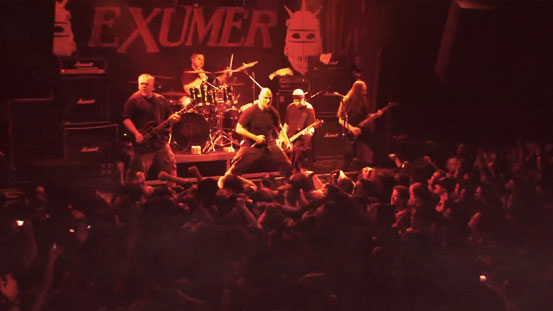 EXUMER have premiered the video to the title track of their most recent album, Fire & Damnation. It’s the band’s first ever official video clip in their 27 year-long history and was entirely filmed and edited in Sao Paulo, Brazil, during EXUMER‘s South American Damnation tour earlier this summer.