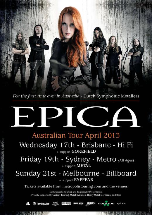 Dutch symphonic metal band EPICA are pleased to announce their first ever Australian tour to take place April of next year. EPICA singer Simone Simons had this to say about the upcoming tour: “Epica has been traveling around the world and has until now never set foot on Australian soil. Being able to perform in Australia is another dream coming true. We are ecstatic to come down under and meet our Australian fans”