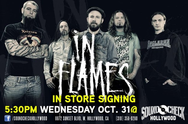 Swedish metallers IN FLAMES has announced a signing session in Hollywood, Los Angeles on the 31st of October. The signing session takes place 5:30 PM at 8872 Sunset Blvd. at Soundcheck Hollywood. The band ask fans to arrive in time to avoid long lines.