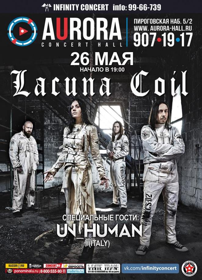 lacunacoil-unhuman-flyer Posted by metalshockfinland on February 15, 2017 This is an image for UNHUMAN Confirmed as Main Support for LACUNA COIL in Saint Petersburg. Images navigation