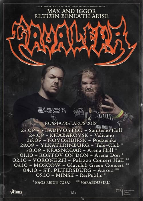 Cavalera-KaosReign-Marabou Posted by metalshockfinland on August 19, 2018 This is an image for MARABOU And KAOS REIGN To Join CAVALERA on Russia/Belarus 2018 Tour. Images navigation Next →