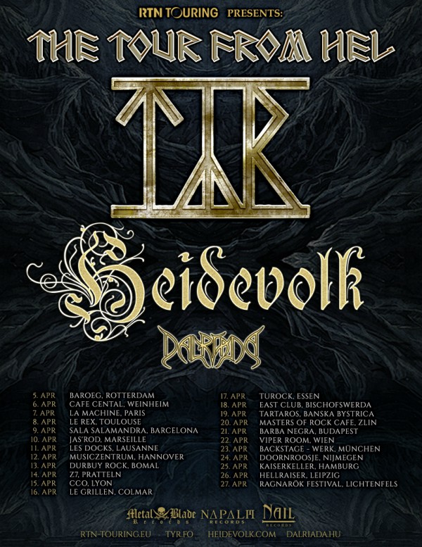 tyr-heidevolk-flyer Posted by metalshockfinland on January 30, 2019 This is an image for TÝR Announce 2019 European Headlining Tour “The Tour From Hel” With Co-Headliner HEIDEVOLK And DALRIADA As Guest. Images navigation ← Previous
