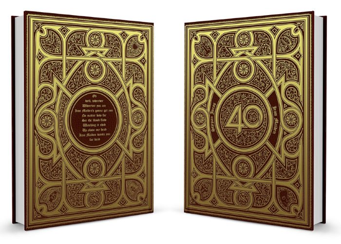 ‘On April 14th 2020, we celebrated 40 years since the release of Iron Maiden’s first album. To mark this occasion, I am announcing an exclusive set of three books, the final set of the trilogy that began with the black leather edition of ‘The Number of the Beast’ and continued with the red leather edition of ‘Killers’. The ‘Iron Maiden’ book will be bound in brown leather with gold leaf print and a wax seal to close out the ‘early days’ trilogy in a spectacular way. ‘The Phantom of the Opera Package’ (brown leather edition of this book, ‘Running Free’ edition of same book with a custom cover page and ‘The Phantom of the Opera’ book from the famous ‘Iron Maiden and classic literature’ series will be a fantastic addition to any serious Iron Maiden collection. An additional gift is an old school ‘40th Anniversary’ sew-on patch. This book will be released in October 2020.’