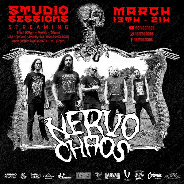 One of the biggest names in Brazilian metal, NERVOCHAOS, have announced their ‘Studio Session Streaming’. The event will take place on Saturday, March 13, at 9pm (Brazilian time). There will be 32 minutes of presentation, recorded earlier this year with the new formation of the band that includes Brian Stone (vocals), Luiz ‘Quinho’ Parisi (guitar), Woesley Johan (guitar), Pedro Lemes (bass) and Edu Lane (drums).