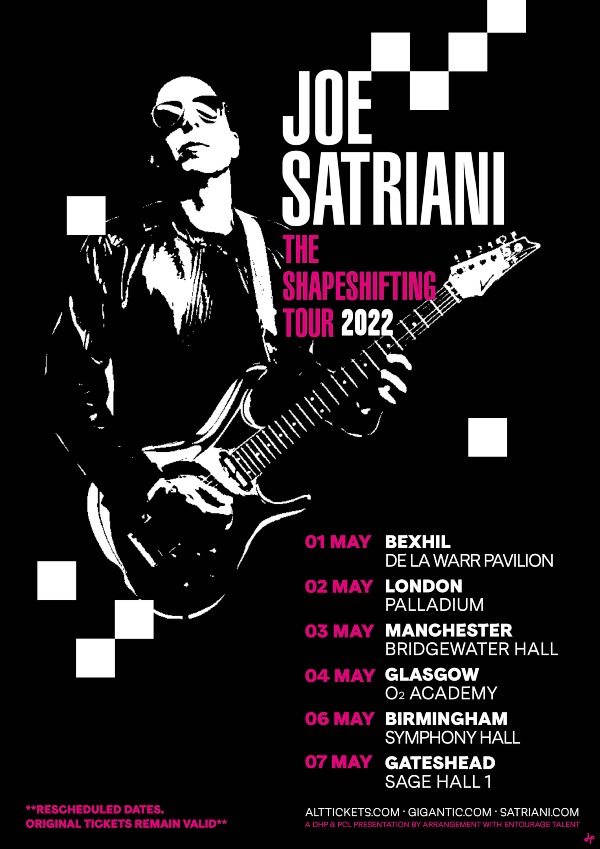World-renowned guitar virtuoso, JOE SATRIANI, has rescheduled his Shapeshifting UK Tour to May 2022 due to the coronavirus pandemic. Tickets for his April and May 2021 UK “Shapeshifting” tour dates remain valid for the rescheduled May 2022 dates.