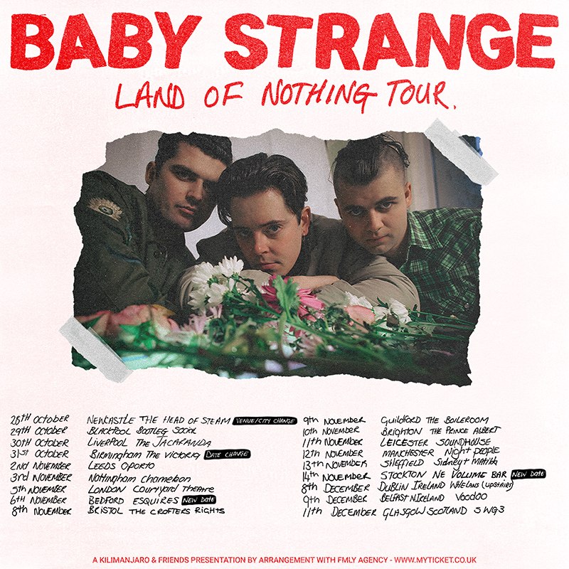 Fronted by the magnetic & alluring Johnny Madden and rounded out by brothers Connaire & Aidan McCann, BABY STRANGE have re-established themselves as one of the most innovative and uncompromising outfits in the UK. Since the release of their critically acclaimed 2016 debut album ‘Want It Need It’, Baby Strange have toured tirelessly, building an enthusiastic and dedicated live audience, selling out venues across the UK & sharing stages with the likes of Frank Carter & the Rattlesnakes, Slaves, Jamie T & Wavves.