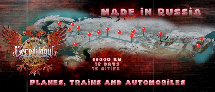 KIMMO KUUSNIEMI: “I did not need to think twice when Jonne (Vocalist, Korpiklaani) asked me if I would like to make a documentary about the Korpiklaani’s extensive Russia/Siberia tour. I knew instantly this would be one of a kind trip. I have travelled the world extensively making films but this journey was completely different from anything else I have experienced. Due to the relentless schedules, all the time on the road on planes, trains and automobiles forced me to re-think the film equipment and filming techniques. This turned out to be great gamble that paid off royally as the look and style of the documentary ended up like something you never seen before.”