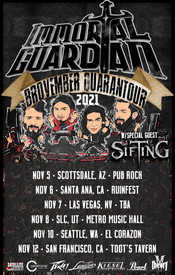 The extreme progressive/power metal group IMMORTAL GUARDIAN are once again taking the epic sounds of their critically acclaimed concept album “Psychosomatic” to the road, this time embarking on the “Brovember Quaratour.” The band’s week-long trek throughout the west coast begins Friday, November 5th at Pubrock Live in Scottsdale, AZ, includes an appearance at RuinFest VI Fest in Santa Ana, CA alongside bands as diverse as Internal Bleeding, Mictlantecuhtli and labelmates Voices of Ruin, and concludes the following Friday, November 12th at Toot’s Tavern in San Francisco, CA with more shows to be announced. These live shows will see the band’s expansive sounds accompanied by a visually entrancing laser/light show, along with support from Los Angeles-based Venezuelan-American progressive-metal act Sifting. Full “Brovember Quarantour” dates are below.