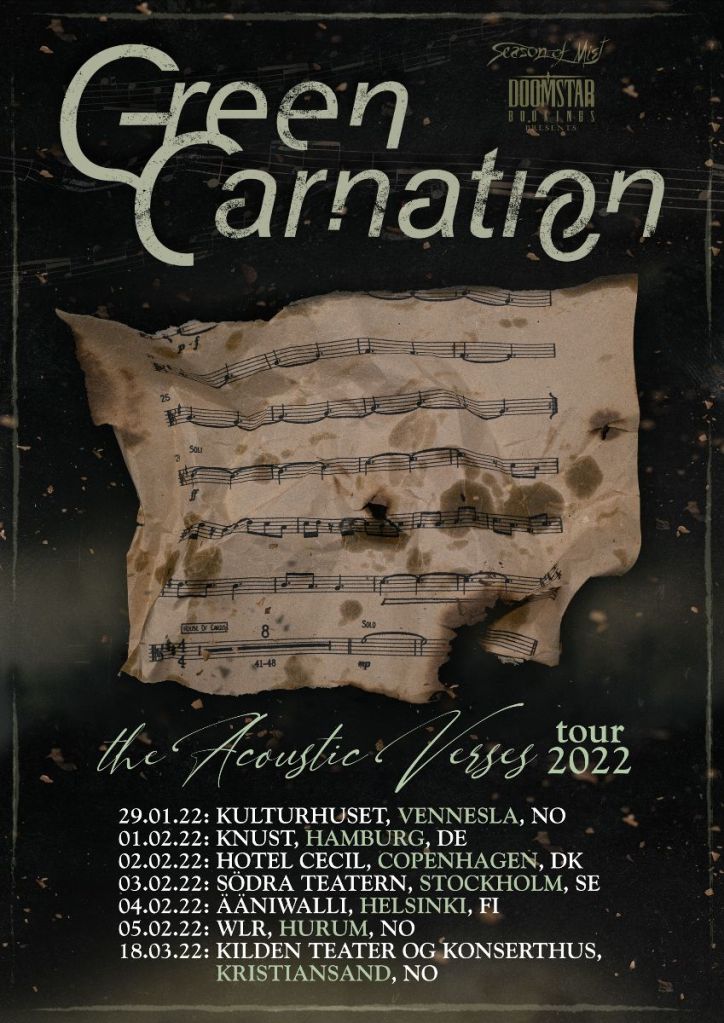 Norwegian progressive metal band GREEN CARNATION have announced several special acoustic shows in celebration of the remastered edition of ‘The Acoustic Verses’. The first concert will take place on January 29, 2022 in Vennesla, Norway and the final show happen in the band’s hometown Kristiansand, on March 18, 2022. Find a full list of shows below.