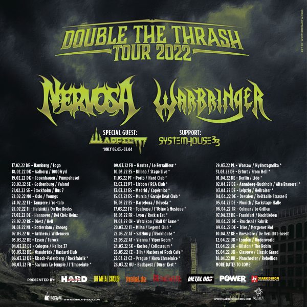 Double The Thrash Tour 2022 w/ NERVOSA, WARBRINGER, SYSTEMHOUSE33