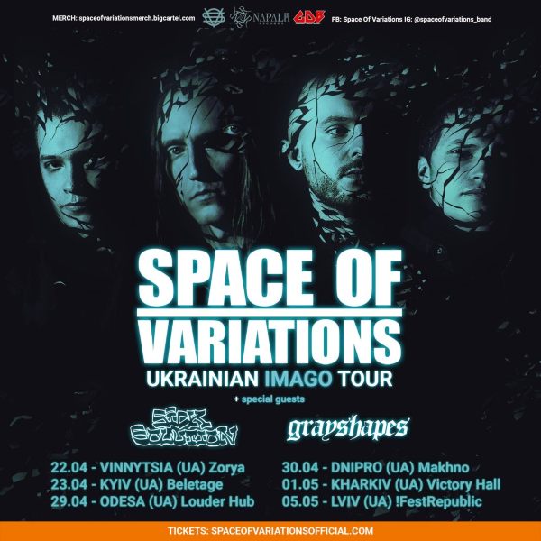 Furiously crashing opener “SOMEONE ELSE” sets free the uncompromising spirit of SPACE OF VARIATIONS – instantly breaking down genres and placing a forceful exclamation mark at the start with smashing instrumentation and a feverish vocal and lyrical assault by Dmytro Kozhukhar and Olexii Zatserkovnyi. Devastatingly heavy “1M followers” takes no prisoners from the first second and features a hefty appearance from former Asking Alexandria vocalist Denis Stoff, resulting in a fearless, addictive metalcore banger. Tracks like eponymous “IMAGO” and intense mid-tempo “Serial Killer” emphasize the multifaceted nature of SPACE OF VARIATIONS with sporadically scaled-back instrumentation and emotion turned to 10. On the contrary, previously released penultimate post-hardcore dystopia “Ultrabeat” delivers bone-crushing beats and is by far no stranger to the band’s devotees. Closing with an insane verse from Ukrainian rap sensation ALYONA ALYONA, the track undeniably marks a milestone in the unit’s soon-to-be revered history while representing the seething desire to expand all limits of songwriting and creativity. This mindset embodies SPACE OF VARIATIONS and their sonically boggling ode to the future, IMAGO.