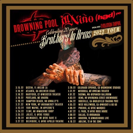 EVOLUTION EMPIRE has released the official music video for their single “Under the Gun.” The band is currently on tour supporting the “BROTHERS IN ARMS TOUR” w/ ILL NIÑO, DROWNING POOL and HED PE.