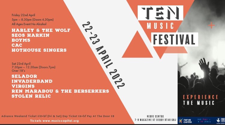 “Looking forward to hitting Derry this Saturday. Ren Marabou and the Berserkers will be joining some awesome bands in the Nerve Centre at this year’s Ten Music Festival run by the awesome folks at Music Capital.”