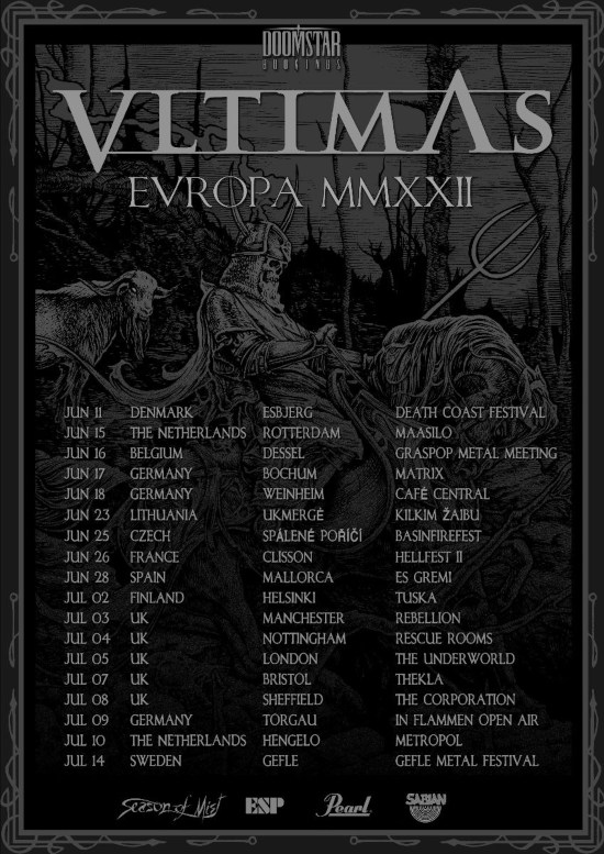 Rune Blasphemer comments on the tour: “After close to 2 and a half years of impatiently waiting it is with utmost pleasure we finally can announce that VLTIMAS will be getting back on the road. Aside from playing some of the finest festivals Europe has to offer, we will also do some selected club shows, including a thorough stint in the UK. A few more shows will be added so stay tuned. Join us in our celebrative and triumphant return to the live stages. We keep marching on!”