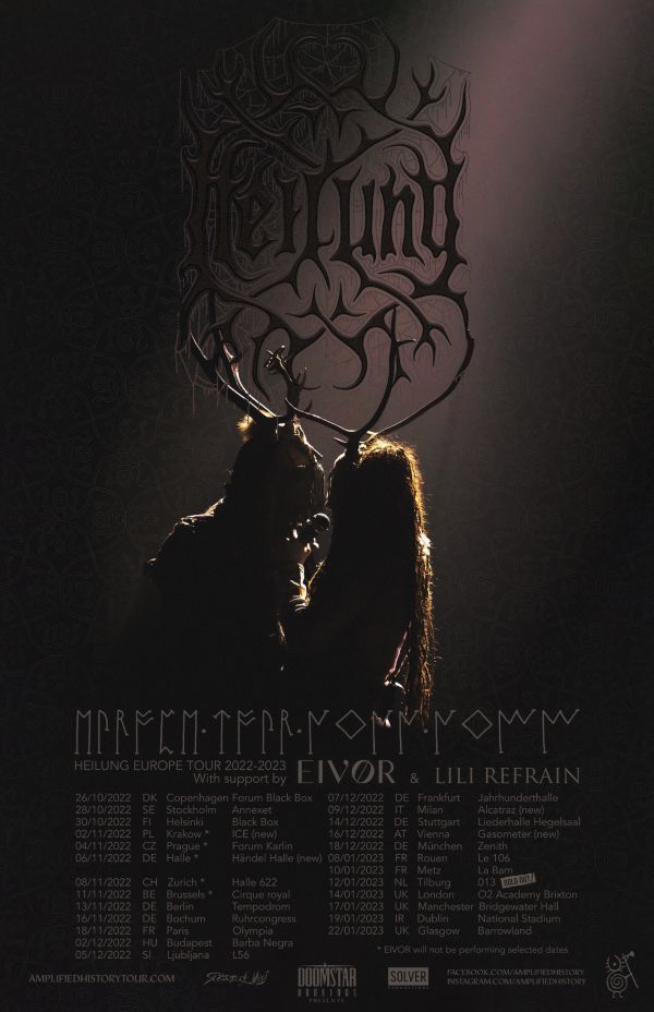 We are deeply honoured to reveal that the amazing artists Eivør and Lili Refrain will be joining us on this tour, we look forward spending time with you on the road. This will truly be a once in a lifetime experience. See you all out there. Love Heilung“