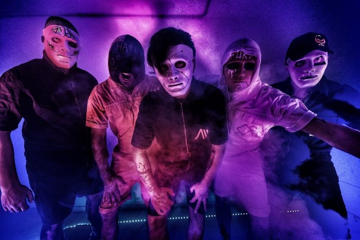 Hurricane On Saturn arose in 2019 in central Italy from the middle of nowhere with their unique “out of genres” approach combining pure epic EDM, larger-than-life rock, razor-sharp metal, rap, furious post-hardcore with memorable melodies, strongly recognizable visual imagery, and inimitable style of lyrics. The mysterious quintet known only as Dakm [Vocals], Maydx [Vocals], Antares [Guitars], Rastaban [Bass], and Marakk [Drums] struck the hard rock scene with the self-produced debut album “Killing Field” (2020) mixed by Evan Rodaniche (Cage9, Powerman 5000) receiving critical acclaim and described as a proposal out of any classification based on a never heard before mix between classic and modern influences.