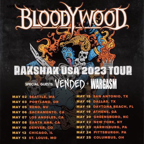 BLOODYWOOD, the Indian metal band that has taken the world by storm with their unique blend of heavy music and traditional Indian folk music, is pleased to announce their upcoming RAKSHAK USA Tour. The tour, which will feature support from VENDED and WARGASM, will kick off on May 2nd in Seattle, WA and make its way across the US ending with an appearance at the Sonic Temple Festival in Columbus Ohio May 25.