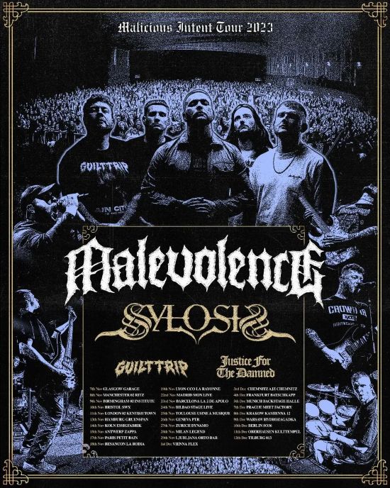 MALEVOLENCE, the UK’s reigning champs of contemporary metal, have been unstoppable since unleashing their latest album Malicious Intent. Now they’re ready to conquer the world, starting with an epic tour across the UK and Europe this winter! Brace yourself for a ferocious evening with thrash metal giants Sylosis, rising underground contenders Guilt Trip, and Aussie monsters Justice for The Damned.