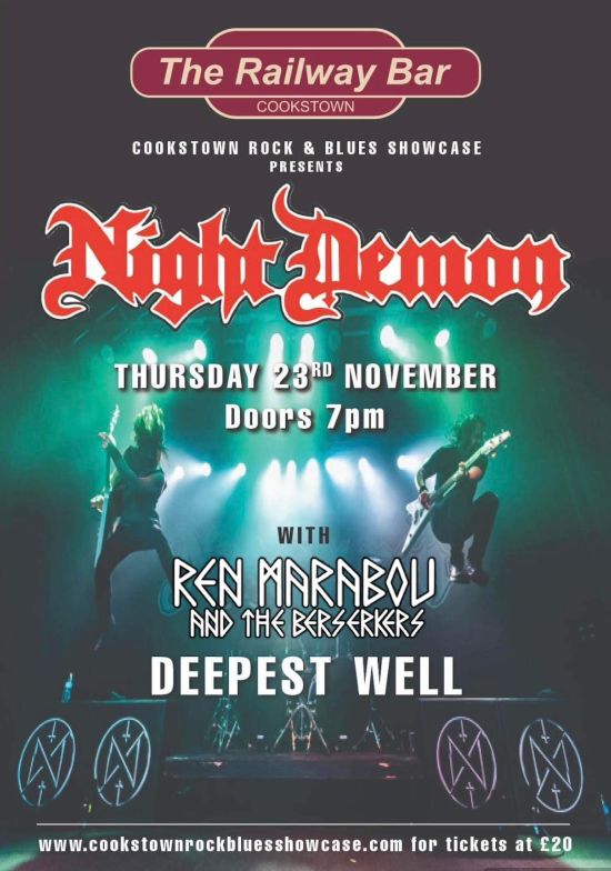Tickets available at https://cookstownrocknblues.com/shop/night-demon-w-support-23rd-november-2023/