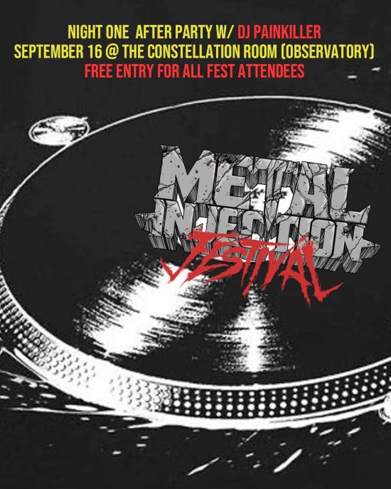 The inaugural Metal Injection Festival is only one month away! To further spice up the festivities, Metal Injection will be hosting an official after party on the first night of performances! Featuring a rockin’ set of heavy metal classics by DJ Painkiller Kim, the rager will take place on September 16 at The Constellation Room (The Observatory) and is FREE for all to attend for festival ticket holders!