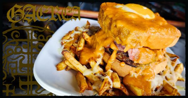 In addition, Kuma’s has collaborated with Gaerea for a signature burger, which is inspired by the Francesinha sandwich, a comforting dish that is native to the band’s hometown of Porto (PT). The Gaerea burger is modeled after Kuma’s famous Slayer burger with a Portuguese twist. The sandwich has a bed of fresh house-cut fries, texas toast, an angus beef patty, sausage, uncured ham, shredded monterrey jack cheese, and a fried egg, all smothered in a decadent Francesinha sauce.