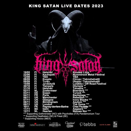 Industrial Metal outfit KING SATAN recently announced new European tour dates for October & November 2023. The Finns will kick off their carnivalesque artistry in Finland on October 30 & 31, supporting DEATHSTARS, and continue wreaking havoc in 5 more countries supporting GOTHMINISTER!