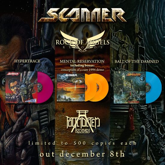 ROAR! Rock of Angels Records in collaboration with PottMortem Records proudly announces the reissue of SCANNER’s iconic albums “Hypertrace”, Mental Reservation” and “Ball of the Damned” out on December 8th, 2023, all on colored vinyl, limited to 500 copies each! “Hypertrace” to be released for the first time with the songs in right order and “Mental Reservation” will include the 1994 demo “Conception of a Cure” as bonus on side D for the very first time on vinyl!