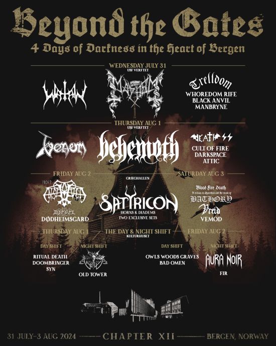 Over the past few days, Beyond the Gates festival has announced a spectacular all-star tribute to Quorthon and the music of Bathory and a Satyricon residency in Grieghallen, where the band will perform two unique sets with no repeats. Now, the moment you’ve all been waiting for has arrived; Beyond the Gates 2024 is now revealing the full lineup and daily schedules!