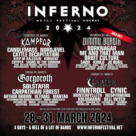 Inferno Metal Festival will take place from March 28-31, 2024 across several venues in Oslo (NO).