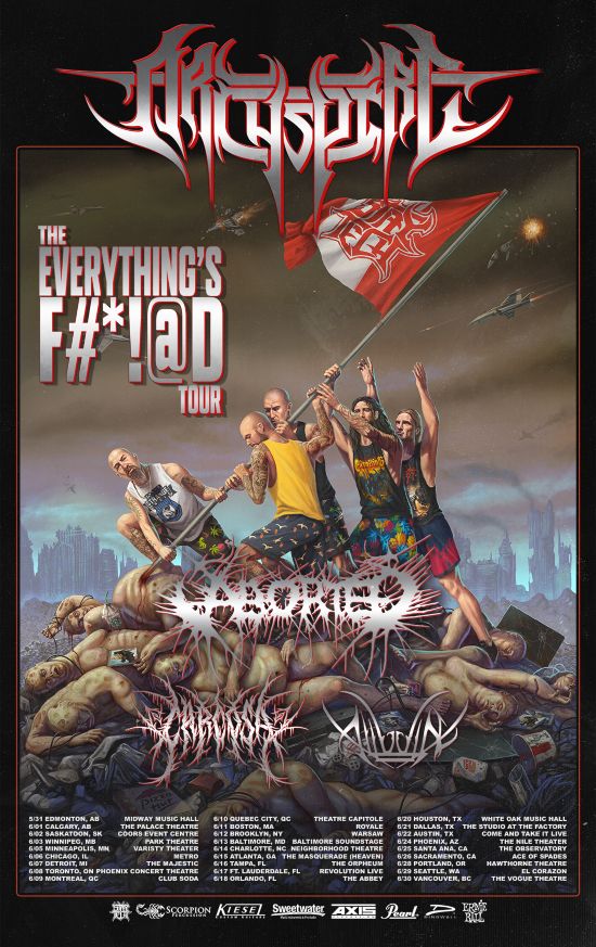 “We’re joining forces with these three elite squads to strategically infiltrate major North American cities”, Archspire says. “We’re on a mission to provide you with a brain-numbing, eardrum-puncturing, nuclear strike that is guaranteed to melt away all those incessant pestering thoughts for at least one night of your dwindling life so that you can completely forget that everything’s f#*!@D and TRULY. F#!@NG. PARTY”.