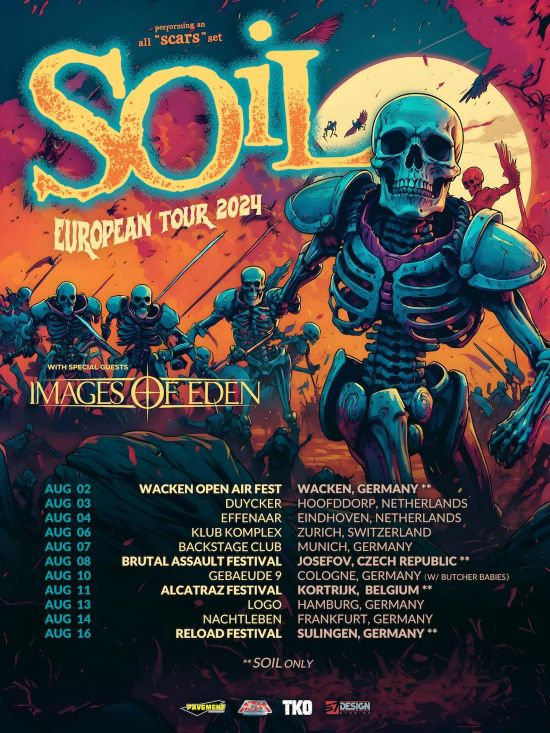 SOiL will return to Europe this summer for a round of festivals and select headline dates. Alongside the Chicago heavyweights is support from fellow label mates, and progressive metal masters, Images Of Eden.