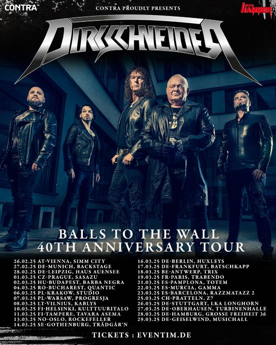 “Balls To The Wall” would be a fitting description for the stage presence of the band, which is completed by the drumming ‘clockwork’ of Sven Dirkschneider and a talented guitar duo built of Andrey Smirnov and Fabian “Dee” Dammers, too. What luck that the 40th anniversary of the mentioned studio album, which was originally released in late 1983 and which is the most sold and best known by ACCEPT, recently fell into the current U.D.O. / DIRKSCHNEIDER heyday. Of course the band don’t want to leave this jubilee unnoticed: that’s why DIRKSCHNEIDER are pleased to not only announce a full “Balls To The Wall” live performance but AN ENTIRE TOUR in belated celebration of the iconic album for spring 2025!