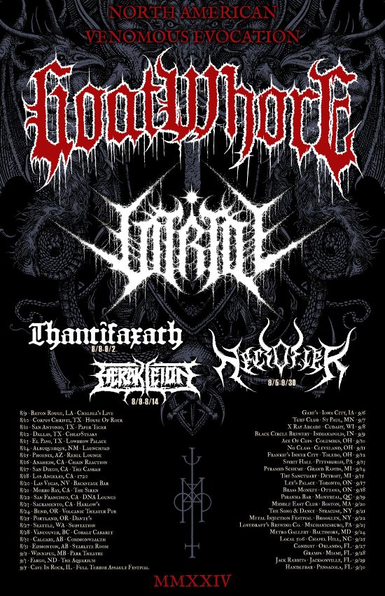 Necrofier are joining their Satanic brethren in Goatwhore and Vitriol this September for a dark and fiery month-long run across North America. The Venomous Evocation tour includes stops for face-melting performances at Full Terror Assault and Metal Injection, plus five new dates in Indianapolis, Cleveland, Ottawa, Syracuse and Mechanicsburg.