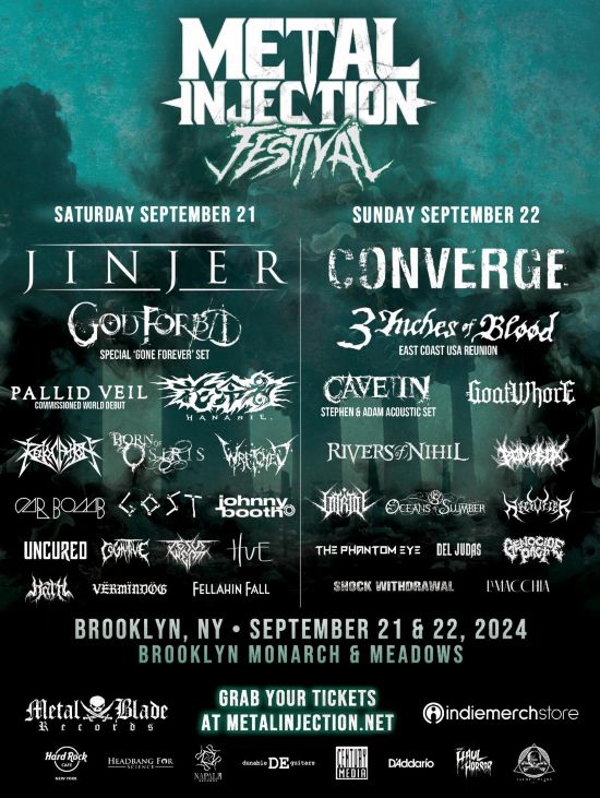 The Metal Injection Festival is now revealing the day splits for its upcoming second annual edition along with the sales launch of single day tickets! In celebration of the 20th anniversary of Metal Injection, the event will be hitting the streets of the website’s origins in New York at Brooklyn Monarch & Meadows on September 21 & 22.