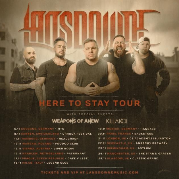 Ever since they took the rock world by storm, LANSDOWNE built its name the old fashioned way – on the road; having performed countless shows internationally, including a 2007 tour for the troops across Kyrgyzstan, Afghanistan, and Kuwait, as well as sharing the stage with rock heavyweights such as Theory of a Deadman, Puddle of Mudd, Creed, Black Stone Cherry, Ice Nine Kills, Pop Evil, Thundermother or RED. This November, LANSDOWNE will be hitting the road again for an intimate club tour throughout Europe and the UK, with very special guests Weapons Of Anew and Killakoi! Don’t miss the exciting tour line-up live at the following dates:
