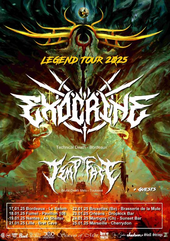 Bordeaux’s own titans of technical death metal, EXOCRINE, are set to traverse the realms of auditory obliteration with their highly anticipated ‘Legend Tour 2025’. Prepare yourselves for a labyrinthine voyage through the uncharted territories of sonic complexity, where ferocious riffs and labyrinthine compositions converge to create an otherworldly experience.