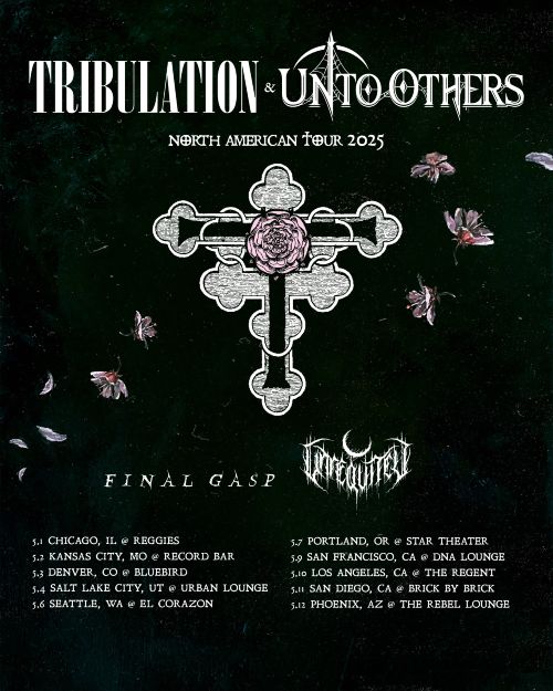 Swedish gothic metal maestros TRIBULATION will be casting their spell on North America this spring! The band will embark on a full tour of the continent this May, for which they will first co-headline from May 1 through May 12 with UNTO OTHERS. Then, TRIBULATION will headline the second leg from May 14 until the final stop on May 25, in which they will be joined by EARLY MOODS as support. FINAL GASP + UNREQVITED will support the entire run.