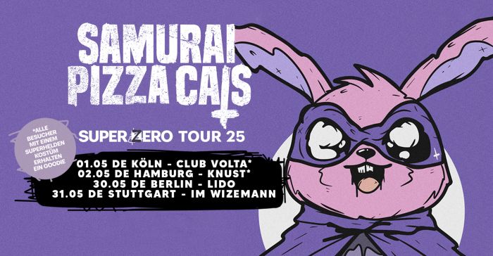 Samurai Pizza Cats will be hitting the live stages in Germany during May with four exclusive headliner shows with a very special twist for Hamburg and Cologne: Both shows are the official “Super Zero” themed parties, where guests with a superhero costume will receive a special goodie. Fans can look forward to an unforgettable, fun, and heavy night.