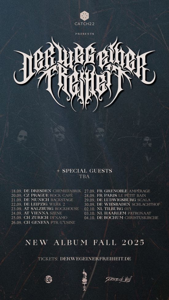 Germany’s boundary-defying black metal collective DER WEG EINER FREIHEIT is set to return to stages across Europe this fall, offering fans a rare opportunity to experience their spellbinding sonic rituals in the flesh. Known for their visceral intensity and emotional depth, the band has carved out a singular space in extreme music—one where melody and chaos coexist, and every note feels like a revelation. This newly announced headline tour spans 15 cities and promises an immersive journey into the shadows of the self, where silence is as important as sound, and meaning hides between the blasts.
