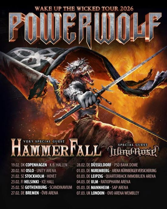 “We are thrilled to unveil the Wake Up The Wicked Tour 2026! After the overwhelming success of our Wolfsnächte 2024 tour, with sold-out arenas and unforgettable nights across Europe, many of you have been asking for more. And now, your calls have been answered. We’re returning to more cities and we’ll be joined once again by our friends HammerFall and Wind Rose. Prepare yourselves. The holy heavy metal mass is rising once again – and it’s coming for you!”