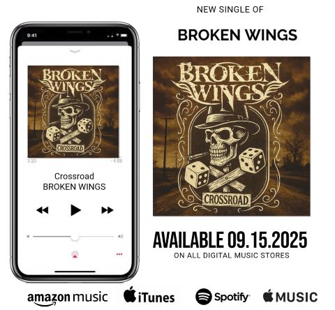 After the great reception of their debut “Against the Wind” (2022), which won over audiences and critics alike, especially in the live dimension, the band is ready to return with new music: on September 15th, 2025, the new single “Crossroad” will be released, a track that encapsulates the very essence of Broken Wings and serves as a powerful preview of their upcoming album “23”, to be released soon under Wanikiya.