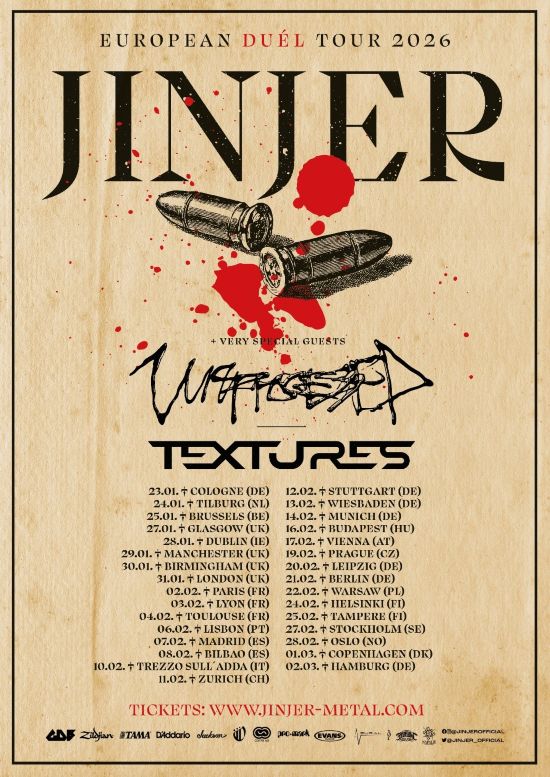 Following the massive news of JINJER’s upcoming European Duél Tour in early 2026, Ukraine’s modern metal juggernauts have revealed two very special guests joining them on this highly anticipated run. Progressive powerhouses Unprocessed and legendary Dutch innovators Textures will round out one of the most exciting lineups the genre has seen in years.