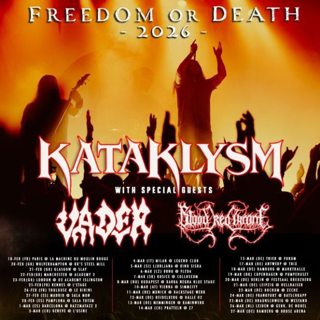 The juggernaut from Montreal will soon be unleashing their devasting death metal on audiences across Europe, joined by VADER and BLOOD RED THRONE for the Freedom Or Death Tour 2026. The onslaught begins on February 18th, in Paris, France.