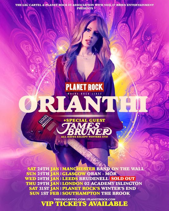 Following the release of her new album Some Kind of Feeling, critically acclaimed guitarist and singer Orianthi will embark on her UK tour in January 2026. Orianthi’s special guest at all concerts (except Planet Rock’s Winter’s End) is James Bruner.